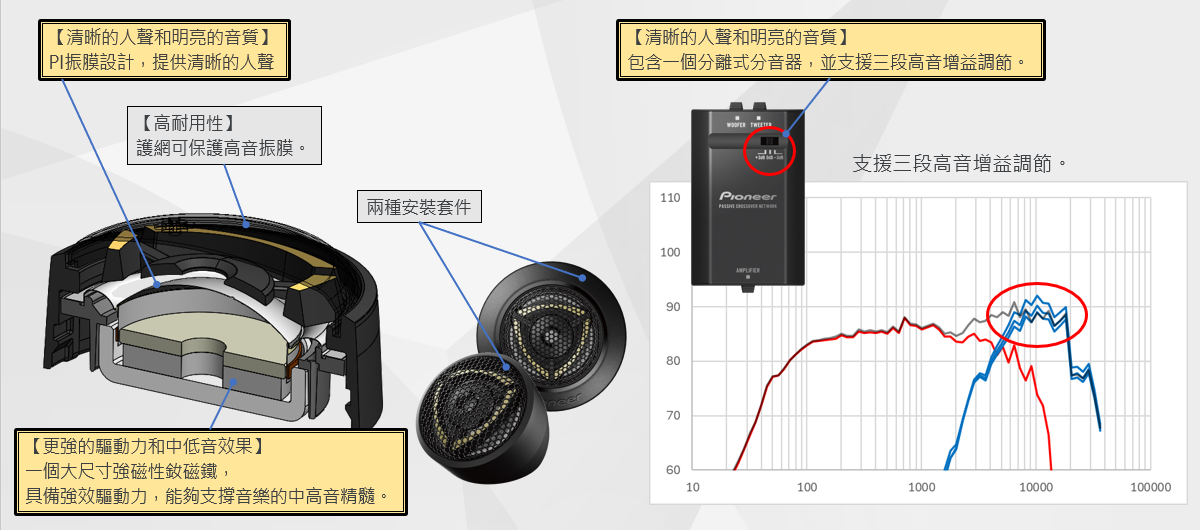 ・中高頻:人聲清晰豐潤、音色清亮通透